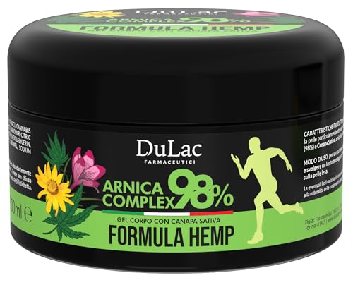 DuLàc, Arnica Complex 98%, Formula Hemp, Kroppskräm Gel med Hampa Sativa, Mentol och Gurkmeja, för Massera Huden Muskler och Leder, Dermatologiskt Testad, Nickeltestad, Tillverkad i Italien, 300 ML