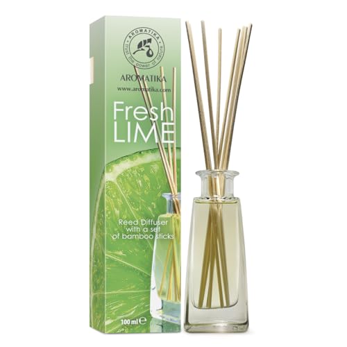 Lime Reed Diffuser 100ml - Scented Reed Diffuser - Non Alcohol - Gift Set w/ 8 Bamboo Sticks - Best for Aromatherapy - SPA - Home - Office - Fitness Club