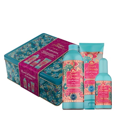 Tesori d'Oriente, Ayurveda duschset, inkluderar 250 ml krämdusch, grädde badrum 500 ml och aromatisk doft 100 ml, aromer med varma anteckningar och harmoniserande noter som håller länge