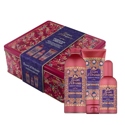 Tesori d'Oriente, Persian Dream duschset, inkluderar 250 ml krämdusch, krämbad 500 ml och aromatisk doft 100 ml, med anteckningar av granatäpple och jasmin som håller länge, presentförpackning
