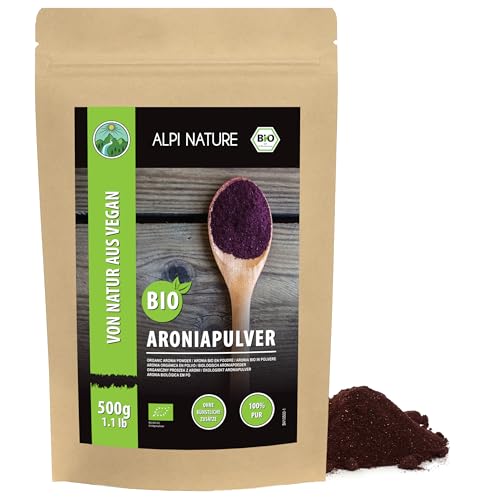 Ekologiskt aroniapulver, malet aronia från ekologiskt jordbruk, laboratorietestat aroniapulver, veganskt, 100% rent, skonsamt malet, naturligt utan tillsatser (500 GR)