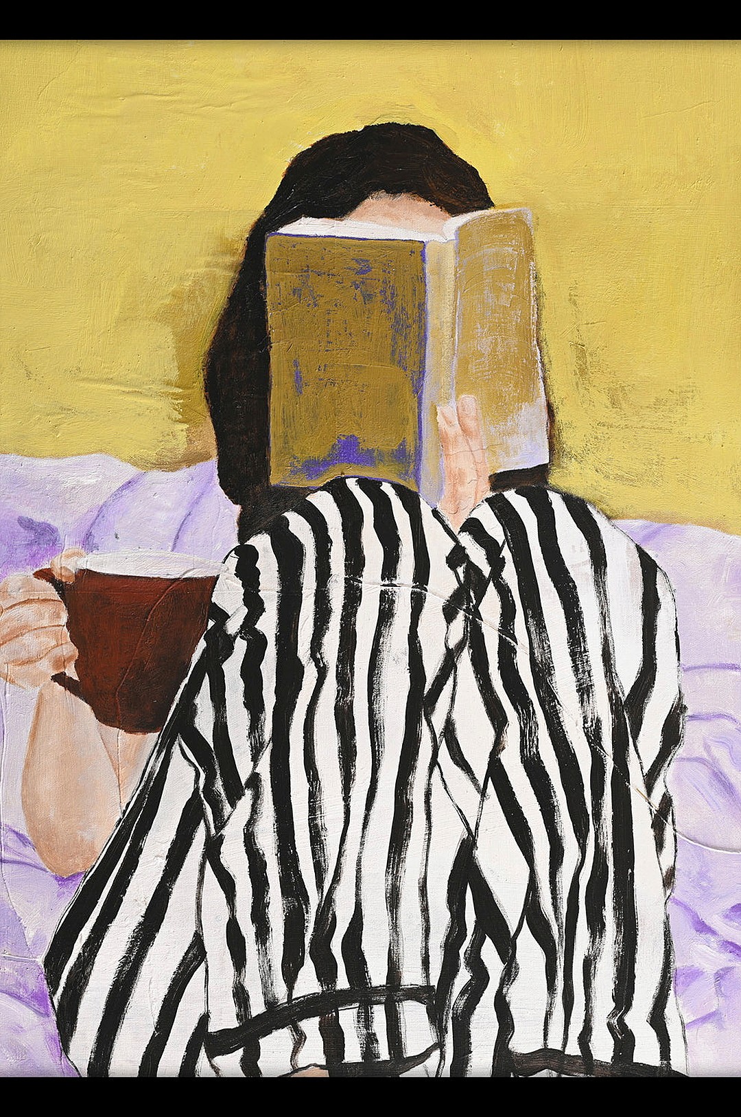 Malerifabrikken - Fin Art Board / Läsning / Svart ram - Gul