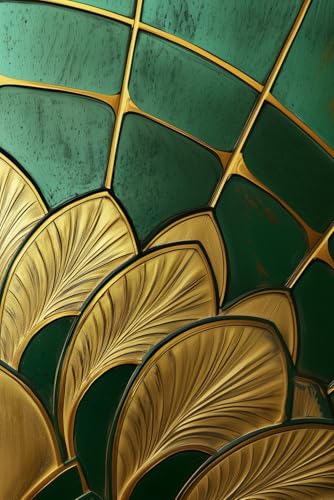Art Deco Notebook | Journal Hardback 200 pages 6 x 9 Inches: Gold and Green Art Deco design
