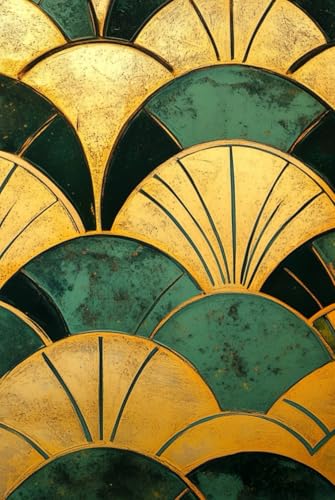 Art Deco Notebook | Journal Paperback 120 pages 6 x 9 Inches: Gold and Green Art Deco design