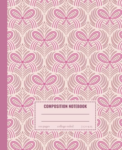 Pink Art Deco Bow Composition Notebook - 110 College-Ruled Pages, 7.5 x 9.25 inches, Stylish Geometric Design