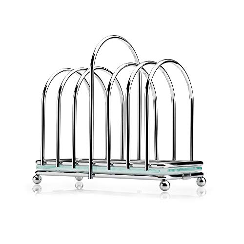 Kilo BA87 Art Deco-design krom 6 skivor rostställ med frostad glasbas, bollfötter och ögla bärhandtag, silver