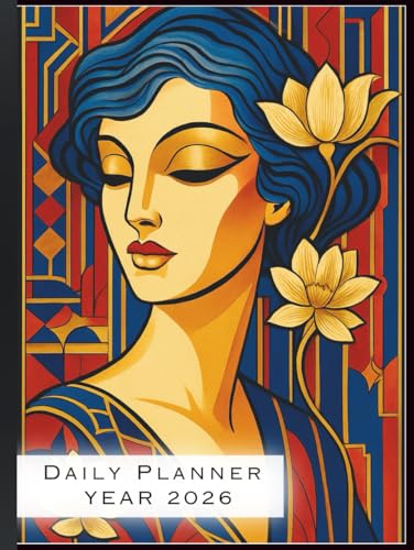 2026 Daily Planner: A4 Size Hardcover Day-Per-Page Diary with Art Deco Woman and Lotus Design: Full Year Organizer for Productivity, Time Management, Goal Setting, and Daily Scheduling