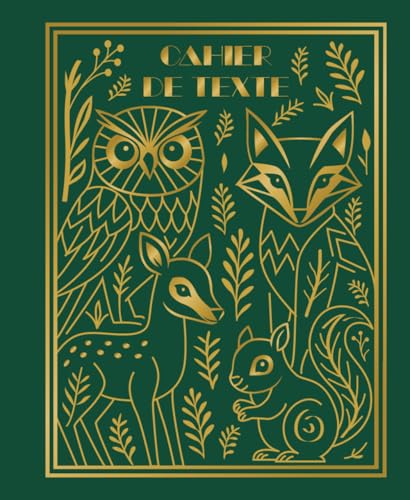 Cahier de texte, Élégant & pratique - Modèle Forêt - Fond vert: Organisation hebdomadaire, format 18x22, design Art Déco, papier crème 90g