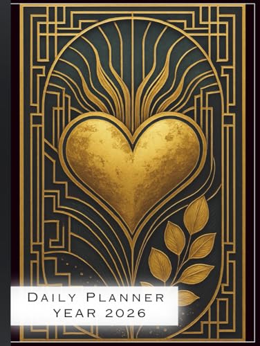 2026 Daily Planner: A4 Size Hardcover Day-Per-Page Diary with Elegant Gold Heart Art Deco Design: Full-Year Organizer for Productivity, Time ... Journal for Professionals and Students