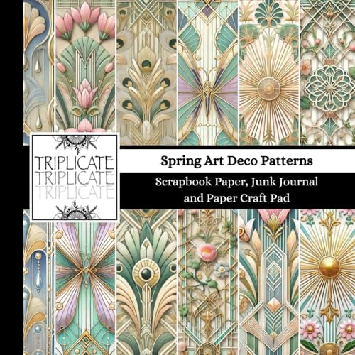 Spring Art Deco Patterns Scrapbook Paper, Junk Journal and Paper Craft Pad: 24 double-sided matte pages of 8.5 x 8.5 inch 60lb (90gsm) decorative ... of 12 background designs (4 of each design)