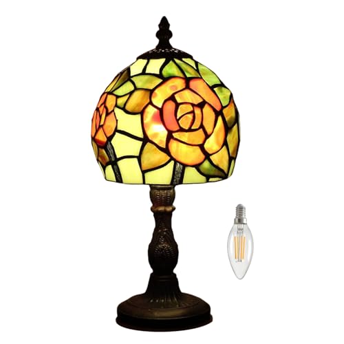Kinbolas Tiffany stil 8 tums bordslampa rosa serie färgat glas lampskärmar liten sängbordslampa läsning antik skrivbordslampa vardagsrum sovrum kontor Vintage art deco viktorianska