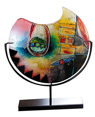 GILDE GLAS art Dekorobjekt skulptur på svart metallstativ – handmålade konstobjekt – flerfärgad höjd 41 cm