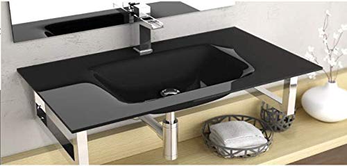 Art-of-Baan® Glas-designtvättställ I ädelt handfat I högkvalitativt handhandfat i svart I DIN kranhål & DIN avlopp I tvättställ stort I mått: 610 x 460 x 140 mm