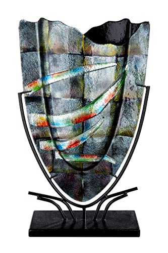 GILDE GLAS art Design dekorativ vas av glas – med metallstativ – present till kvinnor födelsedag alla hjärtans dag mors dag – färg: grå – höjd 48 cm