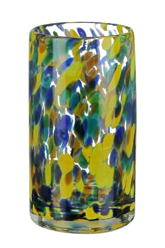 GILDE Glas Art Deco vas glasvas cylindervas – blomvas – present till kvinnor födelsedagspresent – färg: transparent gul grön blå höjd 14,5 cm