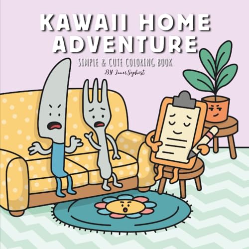 Kawaii Home Adventure Coloring Book: Cute & Simple Cozy Household Scenes, Funny Object Conflicts & Relaxing Art Therapy: Bold-lined, single-sided ... quick, and fun for every age and skill level