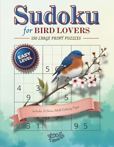 Sudoku for Bird Lovers: 150 Large Print Puzzles, Easy Level, Includes 10 Bonus Adult Coloring Pages: A Relaxing Brain Workout with Nature-Inspired Sudoku and Bird-Themed Art for Stress Relief and Fun