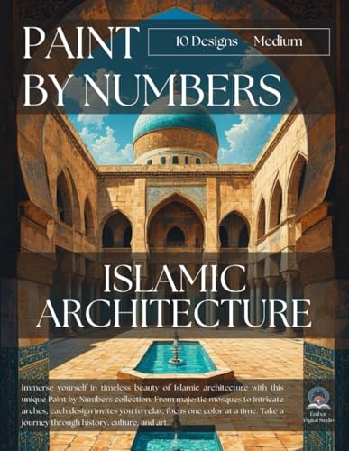 Islamic Architecture Paint by Numbers - Medium Edition: 10 Intermediate Level Designs for Adults, Mindful Art Therapy with Calming Religious Designs & ... with Notes, Sketch & Paint-Test Pages