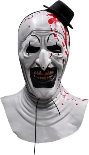 Clownmask för vuxna, Art The Clown Killer Horror Halloween Carnival (vit med blod)