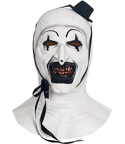 keland Terrifier Art The Clown Ansiktsmask, läskig clownmask, realistisk, läskig, ansiktsmask, halloweenmask, cosplayrekvisita (vit)