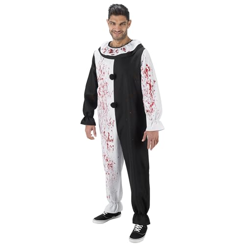 Chaks - Terrifier Art the Clown jumpsuit, tvåfärgad svart-vit skräck look, kostym overall för halloween