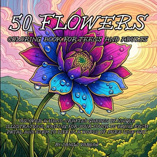 50 Flowers Coloring Book For Teens And Adults: Discover a hand-crafted garden of unique illustrations, waiting for your touch to bring each petal and stem to life in a world of pure line art.