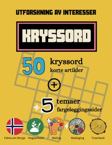 Kryssord bok: Utforskning av Interesser | Crossword Book: Exploration of Interests: 50 kryssord + 50 korte artikler + 5 fargeleggingssider | 50 crosswords + 50 short articles + 5 coloring pages