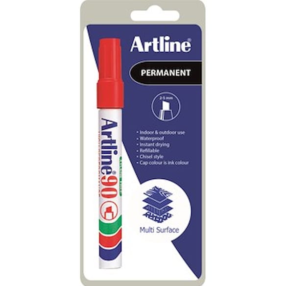 Märkpenna Artline 90 snedskuren röd 12st/fp