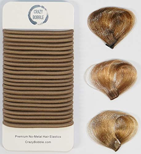 24 st Light Ash Brown Crazy Bobble® Premium icke-metall hårband 4 mm tjocka hårband för vuxna och barn