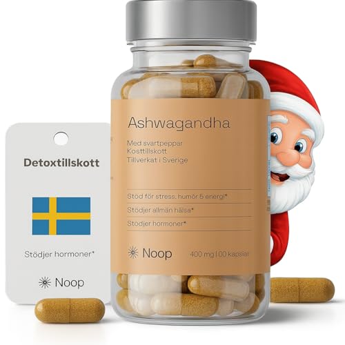 Noop Ashwagandha (Indisk Ginseng) 400 mg - 60 Kapslar - 2 Månaders Förbrukning - Svensktillverkad Stresshantering & Sömnkvalitet - Naturligt Kosttillskott för Mental Klarhet
