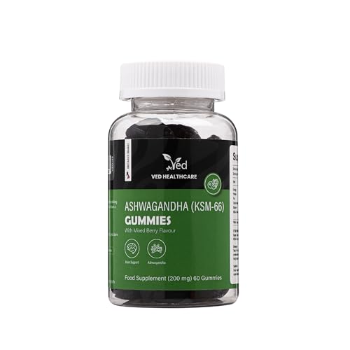 Ved Ashwagandha (KSM-66) Gummies; ASG tuggar blandad bärsmak, 60 tuggbitar 30 dagars tillförsel