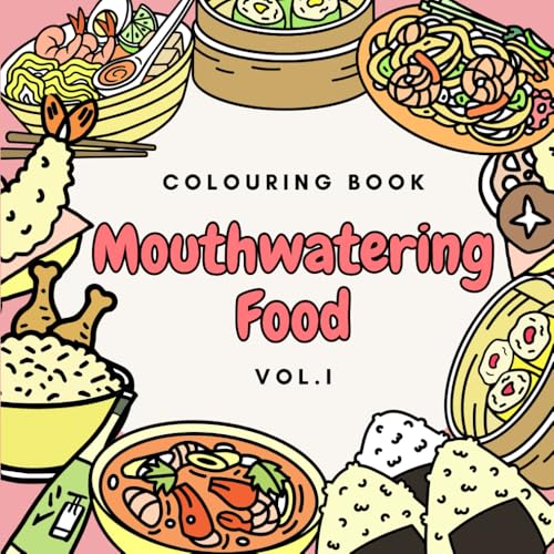 Cute Asian Food Colouring Book, Featuring Japanese, Chinese, Thai Cuisine and More, Simple and Easy Illustration for Relaxation, Stress Relief, For ... and Teens, 8.5” x 8.5” with a Surprise Recipe
