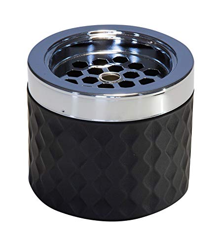APS Vindaskkopp, askfat, tillverkad av kromat metall, frostat glas, med bajonettlås, Ø 9,5 cm, 8 cm höjd, svart