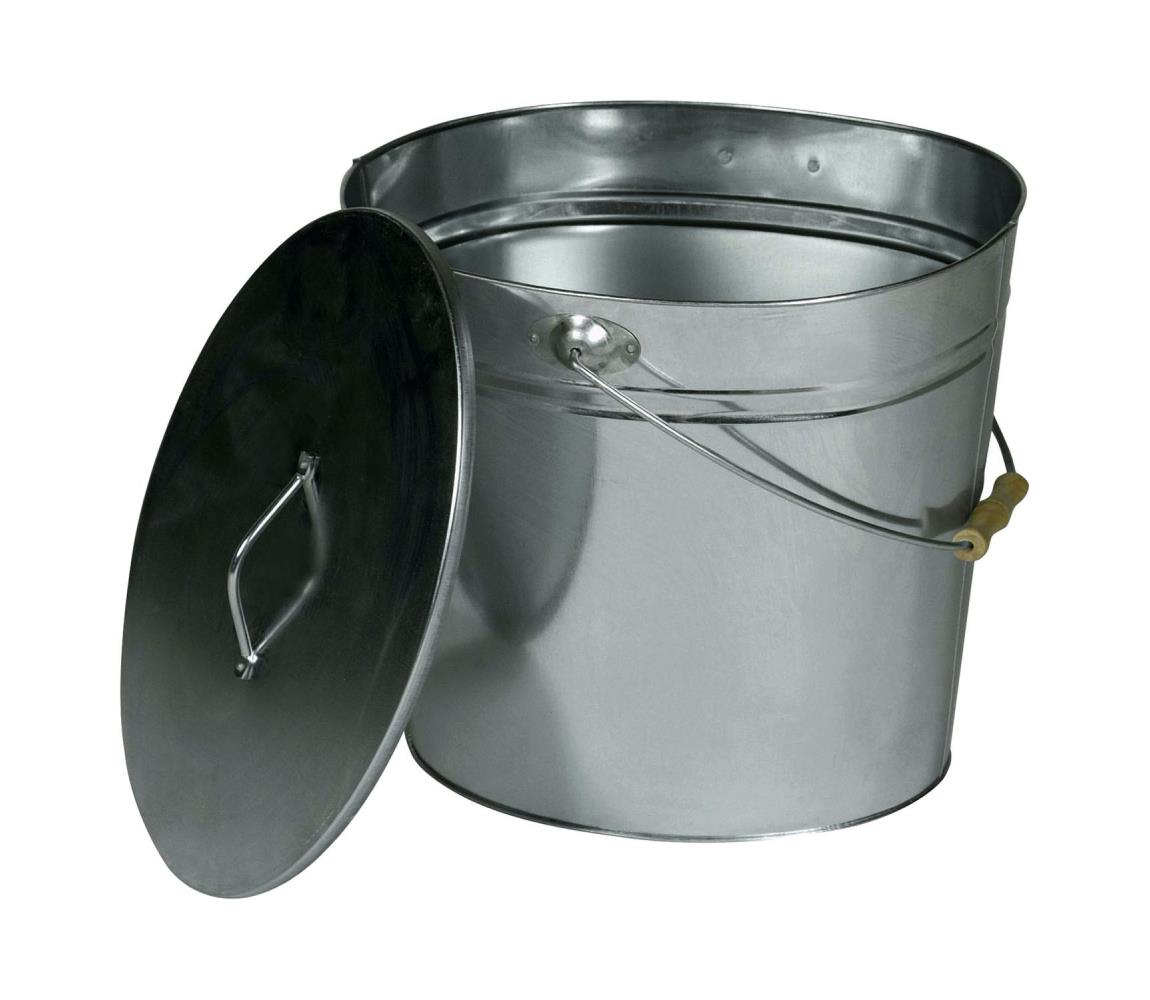 Kamino-Flam Zink askhink med lock – stor kolhink, 24 l – galvaniserad kolhink – zinkhink/aska papperskorg som eldstadstillbehör, för grill och för kol