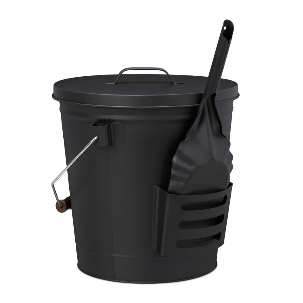 Relaxdays Askhink med lock och sopset, 19 l, inkl. askkvast och kaminspade, askbehållare med handtag, svart