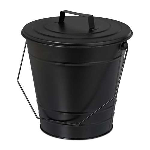 Relaxdays Askhink med lock, handtag, 7 liter, järn, asktunna för kol och aska, öppen spis, ugn, kolhink, svart