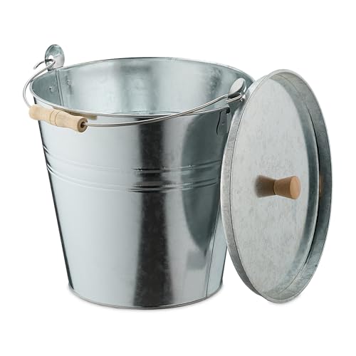 Relaxdays Askhink med lock, handtag, 10 liter, galvaniserat järn, askbehållare för kol och aska, öppen spis, ugn, silver