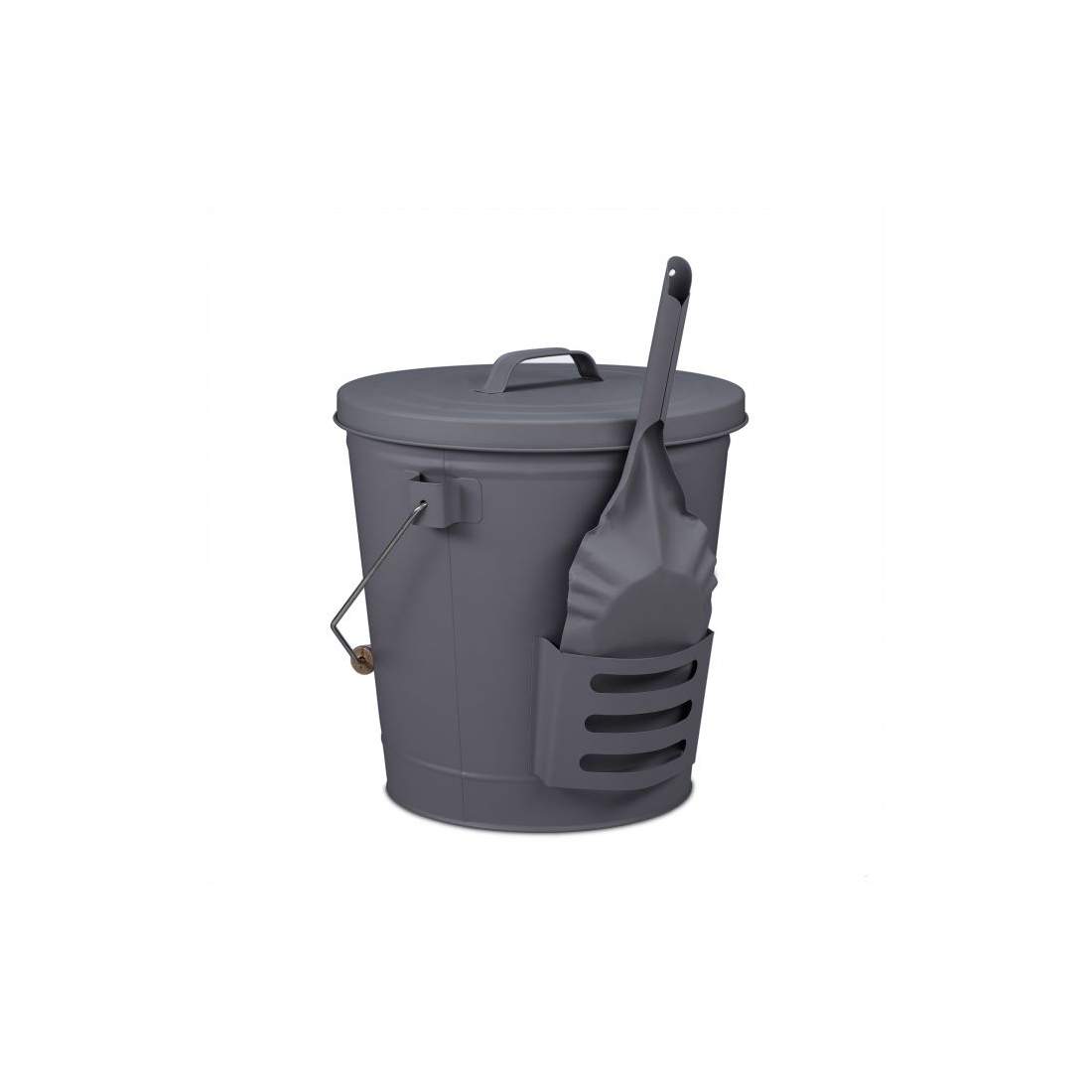 INNO STEG Askhink med lock och trähandtag kolspade, askhållare hink öppen spis verktyg, eldstad, vedeldad spis svart