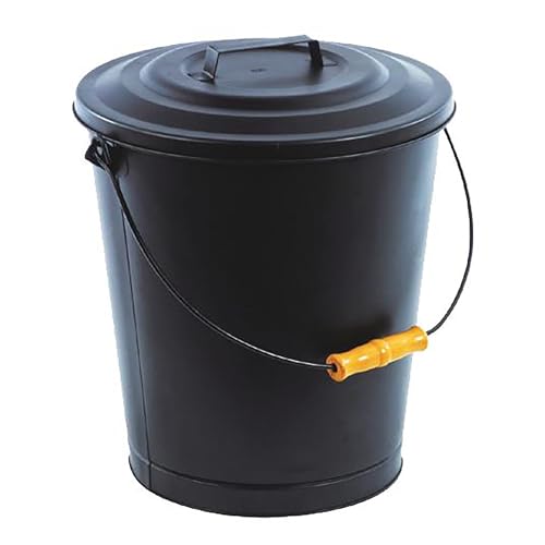 HRB Tin hink askhink med lock svart, olika storlekar (12 liter perfekt öppen spis tillbehör förlängning, hink för förvaring av varm och kall aska