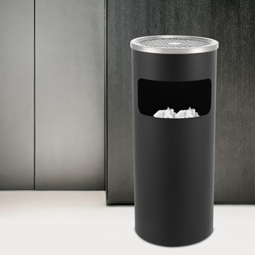 Stående askkopp, kvarn, askkopp för inomhus och utomhus, stor utomhus med rostfritt stål, stående askkopp för kontor, korridorer, gårdar, osv. Inomhus- och utomhusområden (svart)