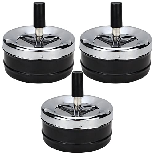ZDNT 3 st vridbar askkopp i krom roterande vindkopp med vindtätt tryck för inomhus och utomhus svart, modern (svart)