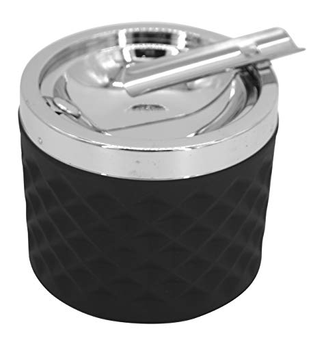 GARMOLY askkopp rostfritt stål med lock, vindtät bordsaskkopp för cigaretter, modern bordsaskkopp bärbar med halkfri bas för utomhus och inomhus (svart, 10 x 10 x 11 cm)