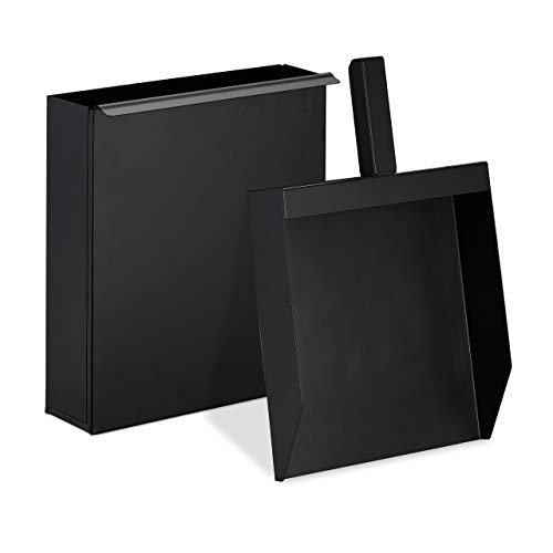Relaxdays Askhink med spade, askbehållare för öppen spis, grill, ugn, asklåda, askskyffel med insats, svart