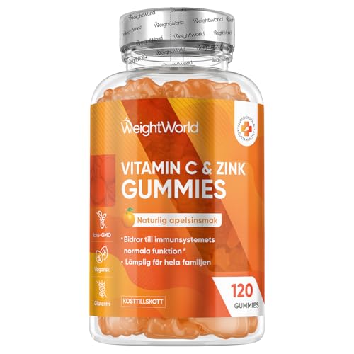 Vitamin C & Zink Gummies - 200 mg Vitamin C med 6 mg zink - 120 veganska gummier - L Askorbinsyra & zinkcitrat med naturlig apelsinsmak - alternativ till kapslar & droppar - WeightWorld
