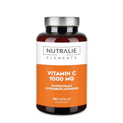 VITAMIN C 1000mg Vegan - Med Rosa Canina Askorbinsyra - Immunförsvar + Trötthet - Antioxidant - Bioflavonoider + Vitamin C - 180 Veganska Kapslar Nutralie