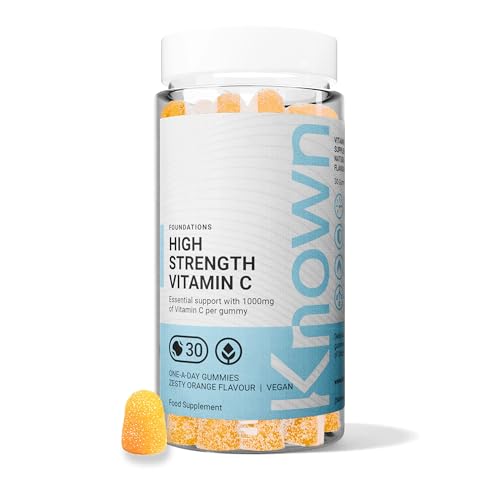Known 1000mg Vitamin C Gummies Högdoserad (Askorbinsyra) – Frisk Apelsinsmak – Veganskt Tuggbar Gummy-kosttillskott – Immunitet, Kollagen, Energi & Antioxidanter – 1 Månads Förbrukning – En per Dag