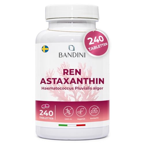 Bandini® Pure Astaxanthin 240 tabletter | 8 månaders förbrukning | 8 mg per tablett | Kraftfull antioxidant från algen Haematococcus Pluvialis - Naturligt astaxanthin, inget magnesiumstearat | Vegan