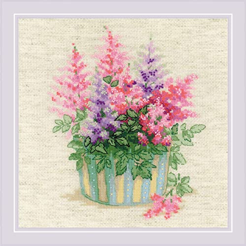 RIOLIS - Astilbe 2059, korsstygnskit 23 cm x 23 cm, korsstygnskit för vuxna, räknade korsstygnssats, broderikit för nybörjare och avancerade, blommiga korsstygnskit