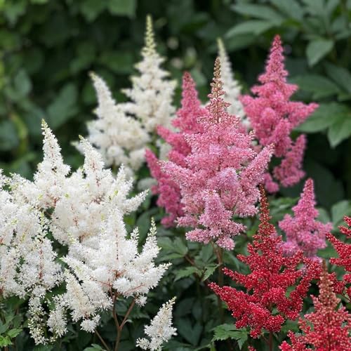 Vinterhärdig Astilbe Perennsamling - 10 Växter/Lökar - Mix av 5 Sorter för Trädgården - 2 av Varje Färg - Stora Fleråriga Växter från Holland - Vita-röda-rosa-lila Hybrider - Ingen Frö