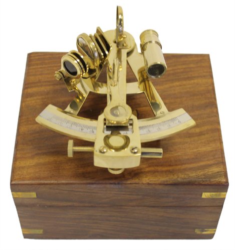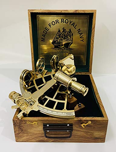 Nautisk 23 cm mässing handgjord polerad mässing med trälåda | Navigationssextant | Real Sextant | Vintage antik maritime astrolabe sextant samlargåva